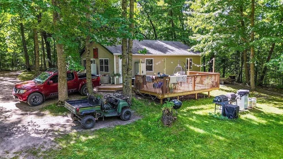 Escape to your own private oasis on Strawberry Lake boasting 468' lake frontage! You won't want to miss out on this gorgeous property nestled at the end of Strawberry Ct. With more than 4 acres to roam surrounded by deciduous tree coverage you may feel like you bought your own private lake. This 1 bedroom seasonal cabin is set in the clearing where you can enjoy starry nights in this rustic and charming paradise complete with an outdoor shower. Wildlife, fishing, firepit, secluded in a wooded area, directly on the waters edge. Everything an outdoor enthusiast is dreaming of. The deck on the property edge is set over the ridge of the bluff and the panoramic views are not something you see everyday. Sheds on the property include a 2002 cedar shed and a second 2008 vinyl sided shed, plus a wood shed. With more than 4 acres this is the build site of your dreams! Call your favorite agent today and experience the tranquility and peacefulness of this serene setting. Additional photos soon
