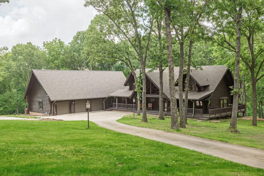 Amazing log home estate property only minutes from Nixa. The custom-built 5,600 s/f Montana-style log home overlooks the woods and the water as the deer and turkey play. Meticulously maintained inside and out with many updates. Newer appliances and pellet stoves, 50 yr. architectural roof, garage door openers, lighting, fixtures and security system. This extraordinary property rests on beautiful fenced acreage only 7 minutes to Nixa and 1/4 mile to James River access. Gated entry with circle drive, attached 3-car garage, shop building and large shed. Truly one of a kind! Situated in the Nixa School District. Call the listing agent to schedule your private showing of this beautiful property and home.
