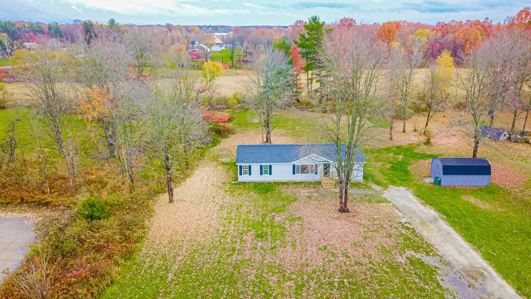 Check out this fully renovated open floor plan 3 bedroom 2 full bath ranch with plenty of room to spread out offering a little over 1.5+ acres sitting far back off the road. Upon entering the open living space the large primary bedroom is situated off to your left. You will have a deep walk in closet and oversized master bathroom equipped with double sinks and a shower bath combo. The 2 opposing bedrooms are on the right wing with a spacious shared bathroom also fully remodeled with a beautiful shower tiled up to the ceiling. New vinyl flooring with vaulted ceilings throughout and ceiling fans in the living room and all bedrooms. The kitchen has ample storage space within the brand new cabinetry offering a stainless steel dishwasher and microwave. Water heater is only 2 years old, water softener, central air, siding, roof, front steps, back deck and all of interior is brand new. 20 x 12 shed to store all the outdoor toys and lawn equipment. New lift pump and aerator on the septic. This home is just waiting for you to create new memories. Call to schedule your private viewing today!