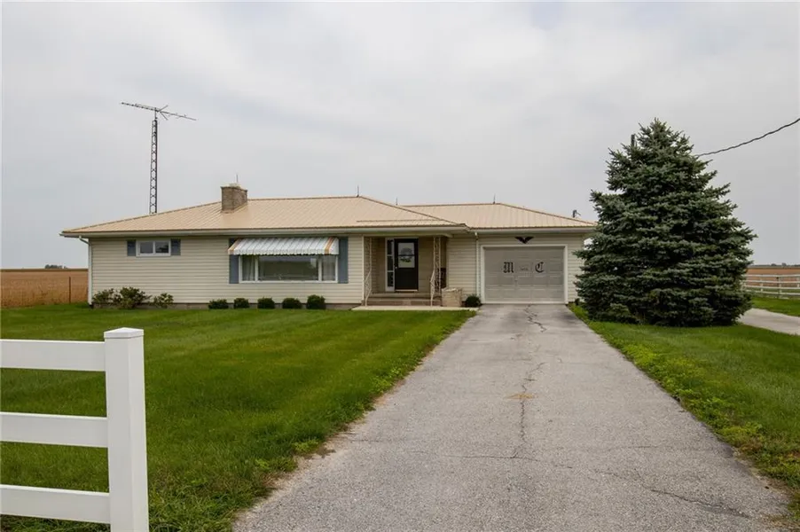 Vinyl and stone 2 bedroom, 1.5 bath, 1 car attached ranch with recent interior remodeling. Also has 1 car and 2 car detached garages, 2 pole buildings, 2 sheds, and a great hay barn with character. Has a fenced in lot suitable size for some livestock. A true country home with privacy, no one will be down your road except you and the farmers.