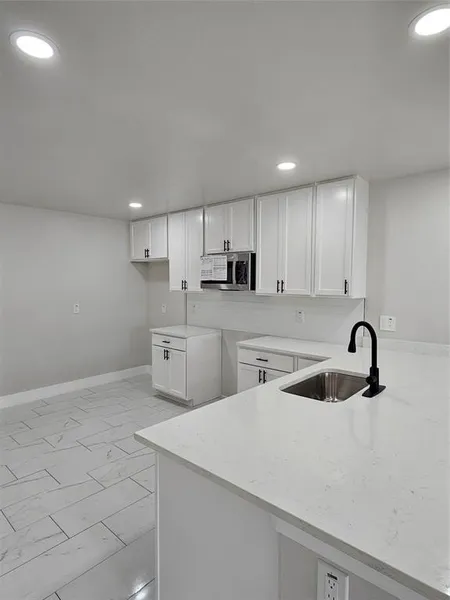 Step into luxury living with this completely remodeled 2 bed, 1 bath unit in a quiet 4-plex. Every detail has been thoughtfully updated for comfort, style, and convenience. Features Include: Hardwood floors throughout; Porcelain tile in kitchen and bathroom; Quartz countertops; Recessed lighting in every room. Washer Dryer connections; Stove and dishwasher included. Location Highlights: Across from The LINX; Quick access to 121, 820, and 183