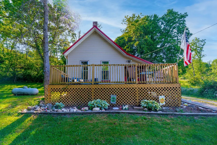 Enjoy a cup of coffee from the deck of your 5.3 acre property lined with mature trees. Single story 2-3 bedroom home located just outside of Zanesfield. Large living room with newer carpet and 10 foot ceiling overlooking the front deck. Spacious dining room that opens up to the kitchen. Attached single car garage with workbench. 24x13 block outbuilding that would be great for storage or a workspace. Ben Logan school district.