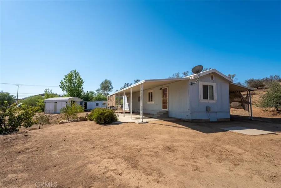 **WOW**, Welcome home to 1.4 acres of this expansive, flat useable property in Menifee. Zoning allows for 2 homes. Bring your imagination and Build your dream home and an ADU. This home is located on a quiet street with no through traffic. Bring your horses, your tractor and your toys. Plenty of room for RV parking. Enjoy the Gorgeous views of the San Jacinto mountains. The main home has two nice size bedrooms, a master bathroom, a walk-in shower in the other bathroom, a very large kitchen/living area, inside laundry room along with a washer and dryer. Two attached carports on both sides of the home with plenty of covered parking for your cars. There is a huge storage shed large enough for all your farming equipment and other items. There is a small mobile home on the property, great also for storage or you can fix it up and use it for anything else. It does need some repair. The main house has a Tankless water heater, air conditioning and heating. Scott Road turns into Bundy Road where there is a main shopping area with major retailers. Close to shopping, restaurants, schools, the 15 and the 215 freeways. You won't want to miss this.