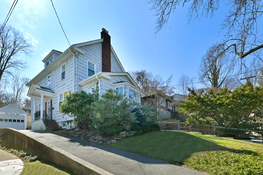 Welcome to "La Tulipe" Turn-key CH Colonial which sits perpendicular to Hollywood Ave. Landmark and Historical Area surrounded by the Bay. Tastefully renovated, 9 ft. ceilings with beautiful millwork, dental molding, window seat in the sun drenched Formal Dining Room, EIK with access to yard. Traditional fireplace with dental molding. Den with bay window and half bath on first floor. Second floor has master suite with bath, two more bedrooms with hallway bath with radiant heat in floor and whirlpool bathtub. House has all beautiful hardwood floors. There is a walk up attic with potential. The basement is unfinished but heating system and laundry area. There is a one car detached garage and underground sprinkler for the landscape. The roof and heating system are about 6 yrs old. The retaining wall supports the driveway.