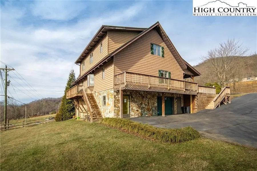 First time on the market for this turn key, low maintenance, beautiful home just minutes from all of the amenities of Boone! Located off of HWY 421, pull into your paved private drive and appreciate the lack of maintenance required with the beautiful vinyl shake and stone exterior capped off with a metal roof. Covered front porch is spacious and inviting to watch the beautiful hues of the sunsets to the west in the evenings from the comfort of your rocking chairs. Step inside to vaulted T&G ceilings with beam accents, gleaming hardwood floors throughout the main level, and a soaring stone fireplace that is the focal point of the living area. Great open flow from the kitchen to the dining and living areas. with the primary suite on the other end of the main level. Heated sunroom off of the main adds additional dining and relaxation spaces and again faces west towards the stunning sunsets over the mountains. Upstairs is a large carpeted loft perfect for an office area or game room, spacious full bath, and two large bedrooms with the same gorgeous wood ceilings and mountain views from the windows. Basement was originally designed as an in-home beauty salon with access directly from the paved parking area, and could be used for home business opportunities or used as an efficiency with the full bath and tile floors. Oversized basement garage affords ample parking and storage. High efficiency wood stove is ducted into the heating ducts for an additional option to supplement the heat pump, and a tankless gas hot water heater makes sure that you never take a cold shower. Beautifully landscaped exterior with usable level yard and a storage shed. Come and see one of the most beautiful and convenient homes in Boone, schedule your tour today!