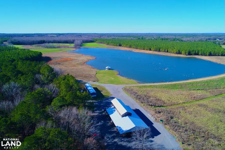 The property was masterfully designed and is highly diverse, offering year-round hunting and fishing opportunities. Ranging from hardwood to pine plantation to open ground with an abundance of food plots, the habitat is ideal for whitetail deer, turkeys, and upland game. The large lake is impressive and offers outstanding fishing. The internal road system is robust and highly improved. Also, there is a new duck impoundment that is already holding waterfowl!