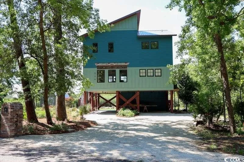 Endless water views await you where Coastal Elegance Meets Superior Craftsmanship – Stunning 3 Bed, 2.5 Bath Raised Beach Home with no HOA! This beautifully designed 3-bedroom, 2.5-bath raised coastal home offers a perfect blend of luxury finishes, storm-ready construction, and timeless character—all just moments from downtown Georgetown. Step inside to discover waterfall granite countertops, Mohawk waterproof luxury vinyl flooring, and all-wood cabinetry with soft-close drawer bases, with top-of-the-line KitchenAid appliances (stove, microwave, dishwasher, oven) and a striking oak bourbon barrel-accented island. Flooded with natural light, the home features four 8-foot arched windows in the living room and two 5-foot arched in the master bedroom, complemented by French double doors leading to the porch—ideal for seamless indoor-outdoor living. The living room and bathroom showcase 6” pine tongue-and-groove detailing for added warmth and charm. The custom-engineered floating staircase, crafted with 4-inch thick cypress treads, antique newel posts, and iron balusters, is a centerpiece of the home’s design. The luxurious master bath is a sanctuary, boasting an oversized glass block shower with a soaker tub, protected by a premium Schluter system. Washer/dryer hookups are conveniently located on both levels. This home was built for resilience with Kolbe Missile 4 Rated hurricane windows and doors, a steel roof, concrete composite siding, and concrete block garage flooring. Relax on the composite decking porch with aluminum pipe railings, rinse off in the outdoor shower, and enjoy the professionally landscaped Bermuda sod backyard with paver walkways. Additional highlights include: 12-foot transom with custom artist-painted pediment Dual HVAC units Gas tankless water heater Cheyenne Shaker plank interior doors Fiberglass pallets under the deck for durability This home delivers both beauty and brawn, designed to impress and built to last. Don’t miss your chance to own a one-of-a-kind raised beach home where quality and coastal lifestyle meet. Close distance to Georgetown's famous dining, shopping, live theatre entertainment, a few full serviced marinas, and the scenic Harborwalk. Short drive to Mount Pleasant and Charleston. Additional lot next door is for sale as well. Call your realtor for a private showing today.