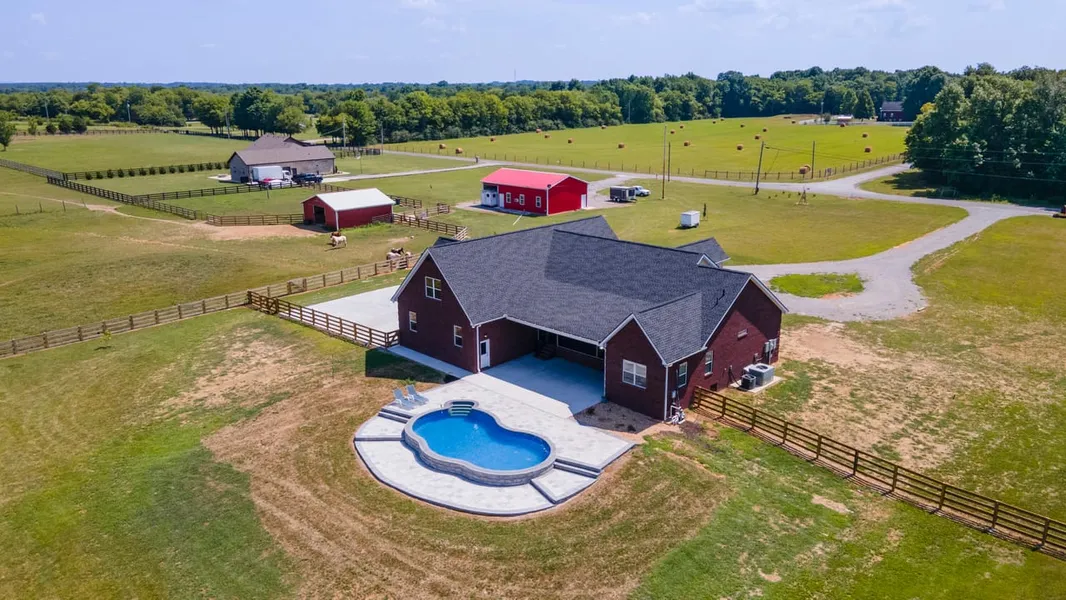 New construction home on 13.5 acres just outside of town. The land is a perfect opportunity to create a mini farm with nearly 9 acres of fenced in pasture with cross fencing to separate livestock, heated and cooled 30x36 shop for equipment, and a 30x30 4-stall horse barn. Inside the home you will see hardwood floors, all bedrooms located on the bottom floor, spray foam insulation, and a large bonus room upstairs. Layout is very well thought out for easy flow and multiple flex rooms to create anything you would like. Relaxing mornings or evenings can be spent on the screened-in back porch overlooking the pool and pasture area.
