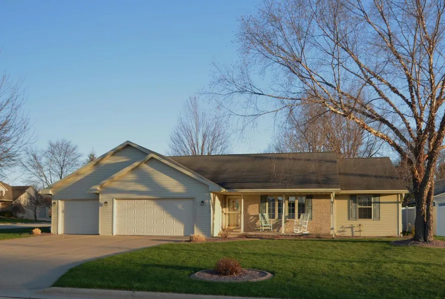 Excellently Cared For 3-Bedroom, 2.5 Bath Home Features A Split Bedroom Design. Living Room/ Cathedral Ceiling & Gas Log Fireplace. Beautiful Kitchen Includes All Appliances, Raised Panel Cabinets, Snack Bar/Stools. Patio Drs. Off The Dinette Lead To A Patio Area With Pergola Overlooking a Fenced Yd. Convenient 1st. Flr. Laundry /Washer & Dryer. Exceptional Lower Level Decorated In A Packer Theme Featuring 900+ Sq. Ft. / Half Bath. Spacious 30 Ft. Family Room, T. V. Area and Office Space. Basement Storage Space / Built In Shelving. 3 Plus Stall Garage Has An Epoxy Coated Floor & Built In Counter/Cabinets. Spring Green Lawn Service Paid For The 2025 Season. Security System-Monthly Fee ADT Extra. Sump Pump / Battery Backup System. Convenient Location In A Great Neighborhood.