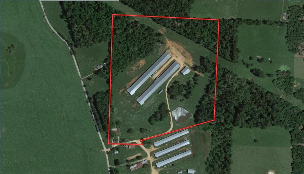 33 acres MOL, 2 Simmons broiler chicken barns - the new mega barns (66x600) - and a home that will require some TLC. Beautiful views on the farm and near by poultry supply companies help back daily work easier and more enjoyable. Also being marketed with additional 39+- acres, 3 more barns and another home.