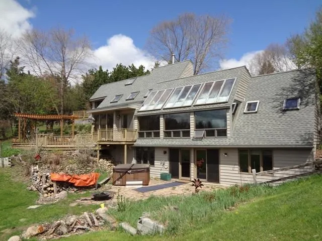 2525 Sky View Rd, Amherst Junction, WI 54407 Horse lovers look this way!! Here you will find 33+ AC of rolling hills, woods, pastures, fenced areas for your horses. Then enjoy an updated contemporary Blenker-built home with 4 bedrooms and 3 full baths with passive solar heating. Property is breathtakingly beautiful and the home is set just right to enjoy the pastoral panoramic views from the multiple balconies, solarium and patio. Recent updates include new energy efficient HVAC system, hot tub, appliances, lighting, fixtures, doors, and more. There are 3000 sq ft of finished living space on 3 levels. Details include skylights, walkout LL entrance, zone heating, woodstove, hot tub, hardwood floors, ceramic tile, vaulted ceilings, private patio off master suite, and more. Quality throughout and plenty of architectural detail to optimize the views to the grazing horses. Call John for a complete list of updates and upgrades and to tour this terrific country horse property.