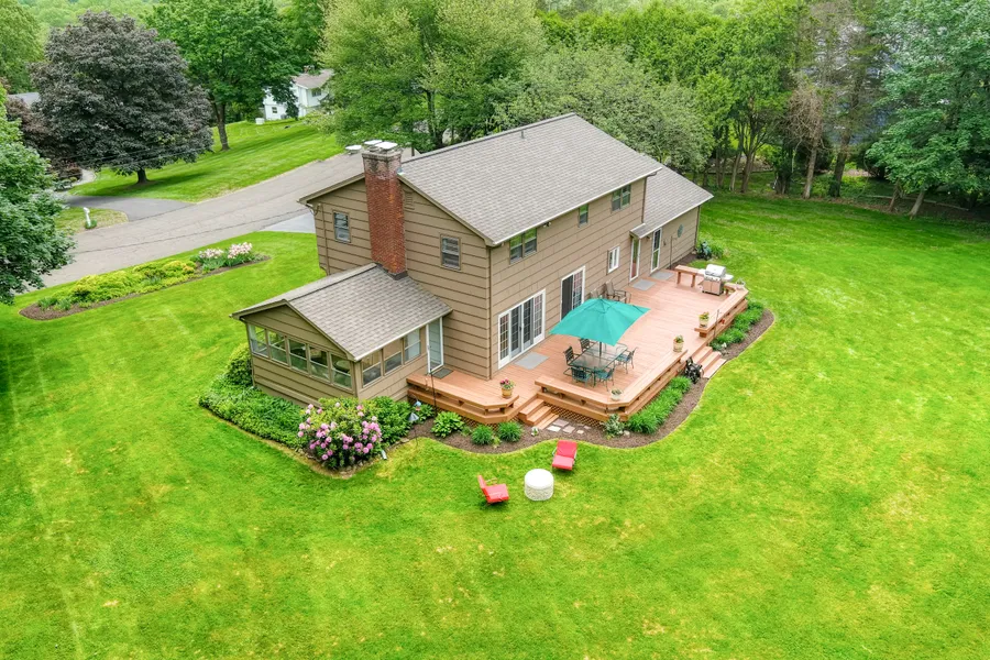 Formerly referred to as the Watch Hill area of Trumbull, welcome to 33 Preston Road! Set on a 1+ acre property, this beautifully manicured and flat yard is surrounded by mature trees, allowing for natural privacy. Professional landscaping throughout, including an abundant number of beautiful perennials. This Classic Colonial Style Home offers 4 Bedrooms and 2/1 Baths. Hardwood flooring, custom molding and solid six panel doors throughout the entire home. Updated throughout, the home feels airy and spacious with an abundance of natural light pouring in. The back of the home features a wall of windows and Anderson French Doors, which lead out to the back deck and impressive yard. The updated Kitchen (2022) features a breakfast nook, with a bay window, stainless steel appliances, granite counters and custom-built center island with a beautiful Black Walnut counter top. The Dining Room and Living Room allow for easy access between the two areas. The Living Room features a wood burning stone fireplace with custom designed mantel. Main floor powder room. The three season Sun Room, encased with all windows, offers fabulous additional living space. The Upper Level features the Primary Bedroom, complete with a newly renovated Full Bath (2024) and three additional well-appointed bedrooms, with large closets. Custom shutters on the upper-level windows. The combination of a large attic, oversized garage+full unfinished basement,w/bonus area (wine cellar/workshop), offer great Storage!