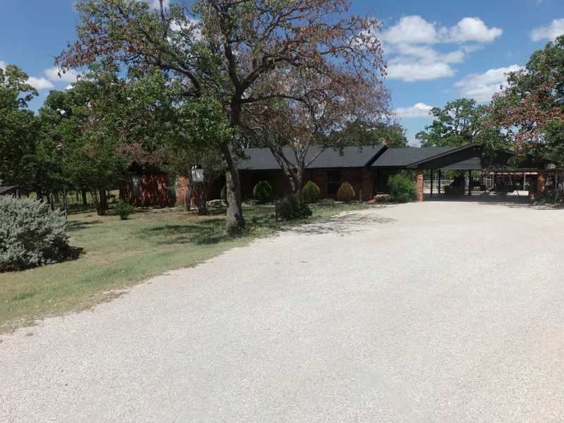 Ranch home with amazing one of a kind kitchen and dining area, oversized living area with large fireplace, study or 4th bedroom, large laundry room with shower leads out to fenced backyard, with storage building on 33.34 fenced and cross fenced acres with trees, spring fed pond and pasture for livestock. Property has outbuildings, loafing shed, above ground pool. Gated entry opens to magnificent horse ready property 45 minutes west of Fort Worth.