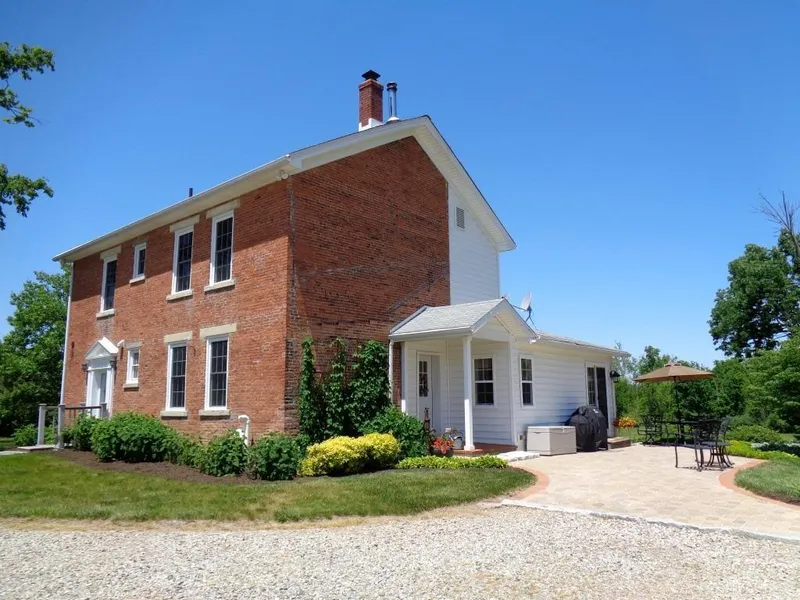 Down a long private lane sits this beautifully remodeled mid 1800's brick home situated on nearly 34 acres. (21 tillable). House has been totally updated. Beautiful country kitchen, granite counters, pantry, natural lighting, dining area full of windows overlooking professionally landscaped yard, a gorgeous 1 acre pond and 12x12 gazebo. In the last few years updates include both bathrooms, new windows, electric, carpet, extra insulation, furnace and central air, storm door, blinds, ceiling fans, wood burning insert, security system, water softener, water filtration system and much more. Lots of original wide plank refinished wood flooring. Master suite could be on the 1st floor and is now being used as a family room. Upstairs two bedrooms plus a study and full bath. This remodel was first class all the way! Outside, new heated garage/pole barn (42 x 48) with concrete floors and hot water plus 24 ft. lean to on back. Former dairy barn (40x80) has been completely refurbished! HUGE loft, milking parlor, new windows, and doors. Plenty of trails for walking or riding ATVs. Creek, pond and plenty of room to roam. This farm has it all. (The farmer has crop rights on the tillable 21 acres until harvest as crops have already been planted.)