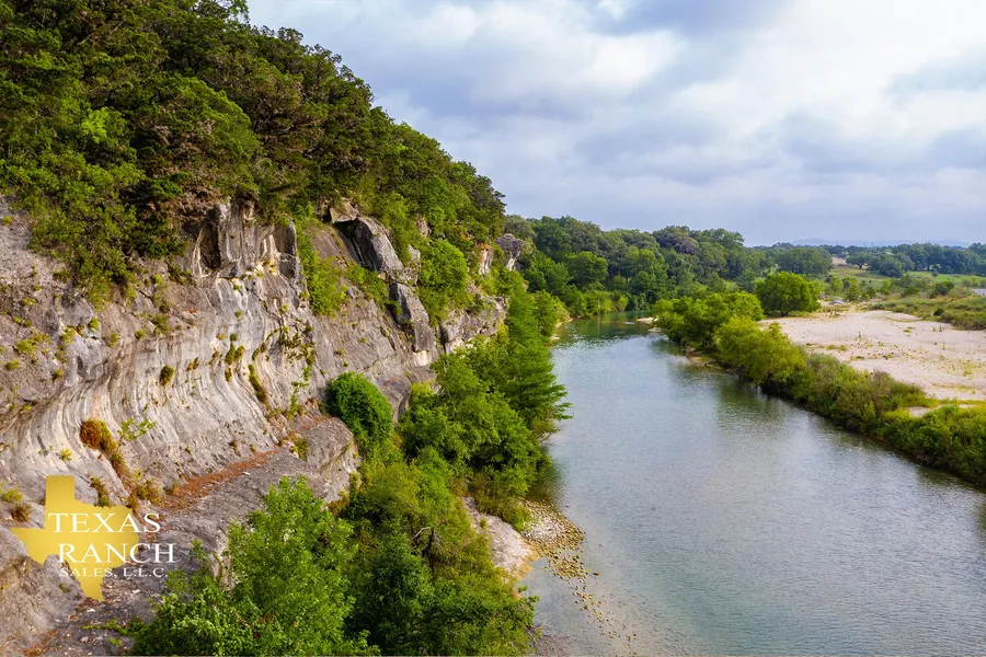 This Texas Hill Country ranch for sale features breathtaking views, breathtaking bluffs, river frontage, huge trees, and lush grassy pastures. The River Bluff Ranch is located just 10 minutes from Bandera, Texas, the Cowboy Capital of the World, with access on paved English Crossing Road. San Antonio can be reached in under an hour and Interstate 10 at Boerne is only a 30-minute drive.