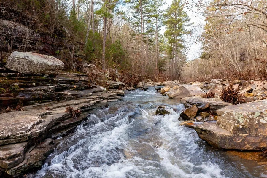 Some interesting things to see on this property of course would be curia creek as the water crashes over the giant boulders, a spring fed waterfall that still has the black pipe at the base of the waterfall. There are several food plots on this property with 3 enclosed redneck stands and 2 muddy enclosed stands along with some permanent feeders! There was 40 acres that was considered scrub brush which the owner decided to clear completely and make bedding for the wildlife. The remaining 290 acres is covered in a mixture of mature red oak, white oak, pine and cedar which is a great mixture for deer and turkey.
