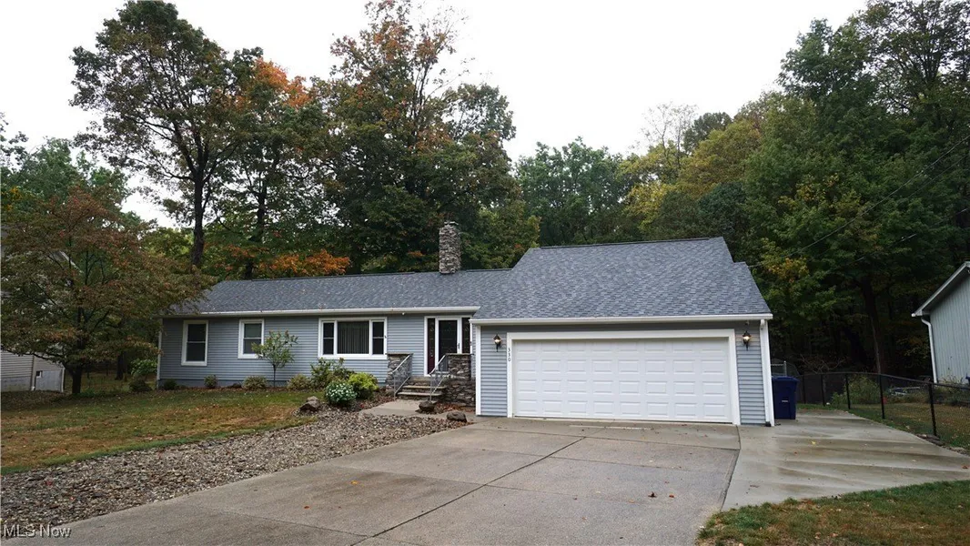 Beautifully renovated in 2011, this sprawling Tallmadge ranch is set on a private, wooded lot featuring a spectacular koi pond and waterfall that enhances the tranquil setting. This 3 Bedroom/3 Full Bath home was transformed with the addition of a sizable Great Room and the expansion of the Primary Bedroom and Kitchen. As you approach the home, you'll notice the stone veneer accents on the front porch and chimney. An elegant front door welcomes you into a sizable entry with ceramic tile flooring that shares space with a unique Hearth Room. Matching stone veneer makes the wood burning fireplace a nice focal point. Hearth Room melds nicely with Great Room providing a perfect place for entertaining. A wall of windows looks onto the picturesque backyard while the cathedral ceiling enhances the room's spacious feeling. A 2019 Kitchen renovation saw the addition of granite countertops, undermount stainless steel sink, and stylish backsplash that enrich the stunning Hickory Kraftmaid cabinets. While the breakfast area adjoins the Eat-in Kitchen, a formal Dining Room with hardwood floors is just a few steps away. Down the hall, the sleeping quarters have 3 Bedrooms and 2 Full Baths. 2 ample bedrooms share a nicely updated bath while the substantial Primary Bedroom boasts his-and-her closets and a practical en suite bathroom. A Screened-in Porch that was added in 2018 sports wire railing accents, shaker siding, a vaulted ceiling and designer ceiling fan. Downstairs, the basement provides a few finished spaces including a carpeted rec area, an office equipped with furniture that could be converted into a 4th bedroom, and a nicely updated 3rd full bathroom. The expansive basement has multiple storage spaces as well as a space for a workshop. Basement walks out to the lower-level concrete patio with access to the backyard. Exterior amenities include 2 storage sheds, firewood storage rack, and a fenced-in dog pen. Call your favorite realtor today to schedule a private showing!