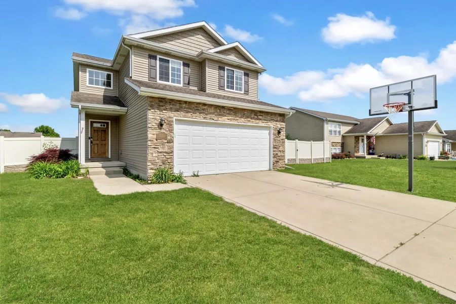 Welcome to 330 Willow... generously sized 3 bedroom 2.5 bath GEM loaded with tons of upgrades and tons of charm! Nestled in a QUIET and desirable neighborhood, this home checks all of the boxes. You'll be immediately greeted with gorgeous curb appeal, a cute front porch a spacious two story foyer, and highly sought after OPEN CONCEPT living. Living room boasts beautiful water/scratch resistant plank flooring, nice neutral paint colors, and already perfectly set up for your flat screen tv. KITCHEN IS A STUNNER, with modern OVERSIZED eat-in breakfast bar, granite countertops, glass tiled backsplash, stainless steel appliances that stay, and upgraded sink and fixtures! Upstairs, you'll find your oversized primary suite with a tray ceiling, walk-in closet, and ensuite bath with walk-in shower and oversized vanity - perfect if you love lots of extra counter space. Second and third bedrooms offer great natural light and flexibility for kids, guests, or an in-home office space. Main floor mudroom off garage, along with laundry room and extra storage/ cabintery. Love to entertain? FULLY FENCED-IN BACKYARD IS THE PERFECT CANVAS FOR YOUR BACK YARD OASIS. Boasting privacy, tons of green space, and a great view of the sunrise. FULL unfinished basement, spacious garage and driveway complete with a basketball hoop.. this home HAS IT ALL. Welcome Home.