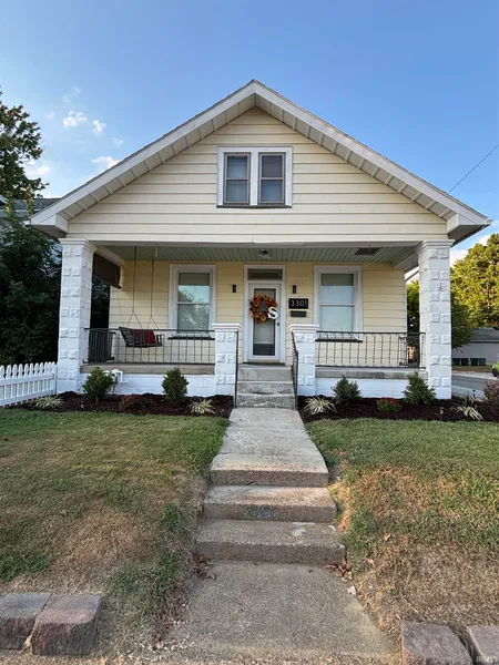 3301 Austin is ready for new owner. Located on the west side, just minutes to schools, USI, coffee shops and restaurants. Home features 2br/1ba, spacious living/dining room area, great kitchen, main floor laundry, full unfinished basement, and part floored attic. Outside front and back covered porches, fenced yard, 1+ car detached garage, on a corner lot with off street parking make it great for entertaining. Additional updates include: new kitchen appliances, flooring on main level, kitchen cabinets and counter tops. Bath has been remodeled to the studs. a+Derr installed HVAC new in Nov 2022. Perfection h&A just cleaned, serviced, replaced filter, and added new attic fan July 2025. Plumber installed new water heater, water shut offs to bath, kitchen, vanity, toilet, dishwasher, and washer. Make appt to view this move in ready home today!
