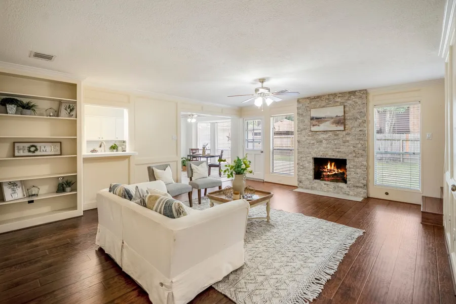 Life feels a little easier on Flaming Candle Drive. With its quiet cul-de-sac setting, flexible layout, & thoughtful updates, this home is built for everyday comfort. The remodeled kitchen features quartz counters, a glass cooktop with a statement vent hood, updated cabinetry, & dual ovens—opening to a bright breakfast area that connects easily to the main living space. Formal living & dining rooms add versatility for entertaining, working from home, or simply spreading out. The primary suite is tucked downstairs, while all secondary bedrooms & a generous game room are upstairs, offering space to relax or reconnect. Out back, a detached two-car garage & open patio sit on a wide lot with room to make it your own. Located in Candlelight Hills with quick access to I-45, you're minutes from shopping, dining, & recreation—with Downtown & The Woodlands within easy reach. Amenities include a clubhouse, Olympic-size pool, & tennis/pickleball courts just blocks away. Zoned to Klein ISD.
