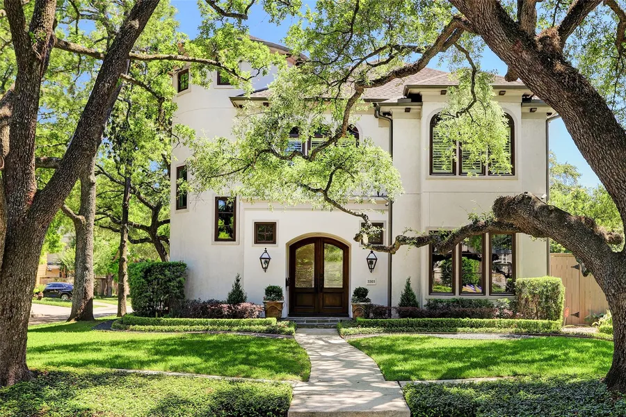 Exceptionally-appointed home with all the bells and whistles, including two prime, separately platted 7500 sf lots in the heart of West U. A corner location and expansive yard provide abundant light throughout and tranquil views of the impressive resort-style patio and pool. Vaulted entry with a stunning curved staircase and chandelier opens to a handsome study, full bath, both formals, a wet bar with wine fridge, an island kitchen with butler's pantry, antique lanterns and new marble counters, and a Segreto hand-stenciled powder bath. The breakfast and family rooms overlook the serene pool with outdoor fireplace, soaring chimney and summer kitchen. Upstairs features a primary suite with marble vanities, dual closets and an outdoor balcony; plus large game room, hardwoods in all bedrooms and recently updated baths. Home is elevator capable, plus Rachio sprinkler controller, mosquito system, security cameras, landscape lighting and Robert Dame plans for a fabulous addition to 8600+ sf.