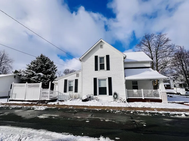 Lovely 3-4-bedroom home located within walking distance of downtown Bellefontaine. Enjoy being close to shopping, restaurants, and the vibrant happening downtown-while still tucked away in a quiet neighborhood. This well-loved property features a newer deck with a privacy fence, creating a perfect spot for morning coffee or quiet relaxation. A chain-link fence separates the 2-car garage from the home, and a beautiful mature pine tree in the backyard provides a serene, in-town setting. Inside, the home offers comfortable and functional living spaces, including: A large front living room, A dining room, A kitchen with all appliances included, A spacious laundry room with washer and dryer that stay. The room off the main-floor bathroom features stunning live-edge wooden bookshelves and can serve as a fourth bedroom, family room, or home office. Upstairs, you'll find three additional bedrooms. The detached 2-car garage is a standout, offering a cement floor, excellent lighting, two separate garage door openers, its own propane heater, and low-maintenance vinyl siding that matches the home. Don't miss out on this charming, well-loved home in a fantastic location!