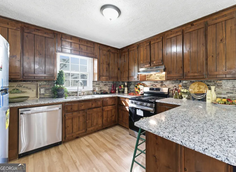 Fully renovated and truly move-in ready, this home offers the perfect blend of modern updates and everyday comfort in a desirable location close to schools, shopping, and dining. A new roof adds peace of mind, while generous natural light throughout the home creates a bright and welcoming atmosphere. The inviting living room is centered around a charming stone fireplace-ideal for relaxing or entertaining guests. The beautifully updated kitchen features granite countertops, elegant glass subway tile, and brand-new stainless steel appliances, making it both functional and stylish for daily living and gatherings. Both bathrooms have been thoughtfully renovated with contemporary finishes and granite vanities, and the primary bedroom provides a comfortable and private retreat, ideal for unwinding at the end of the day. With quality updates throughout, this home is truly turn-key-nothing left to do but move in and enjoy. The basement offers ample storage space, and the tall crawl space provides easy access and excellent storage, ideal for tools, seasonal items, or a workshop setup. Outside, the large private lot offers endless possibilities, including garden areas, outdoor entertaining space, storage buildings, and room for RV or boat parking. With no HOA, you'll enjoy the freedom to customize the property to suit your lifestyle. Ideally located between Canton and Woodstock, just minutes from the future Holly Springs Entertainment District and a short drive to Lake Allatoona. Convenient to Hickory Trails Park, Blankets Creek Mountain Bike Trails, and Etowah River Park. Zoned for the top-rated Sequoia High School district.