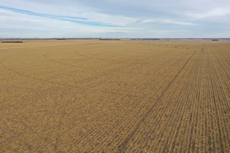 Irrigation water for each pivot on this farm is supplied by a series of 3 electric powered wells. The main wells for each have a Grosch Turbine Pump with a 25-30 Horse electric Motor, and the 2 helper wells being electric submersible pumps. The 3-Phase power service runs along the northern boundary of the property with the end of the line and power meters on the western portion of the property.