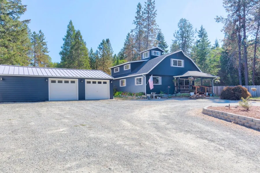 Your Country Farmhouse Awaits! Set on 1.71 acres in the desirable New Hope area this home has been loved by the current owners for the last 50 years. Enter from the covered front porch to the large living room. Enjoy cooking in the updated kitchen with garden window, or feast on a meal in the dining area/family room complete with woodstove. The home features four bedrooms and three bathrooms as well as two pantry spaces plus laundry room. The primary bedroom has an updated en-suite and large walk in closet plus a balcony for long range mountain views. Enjoy your coffee on the many decks spaces-upstairs or down. Outdoor features include 2 deer fenced garden areas, one with 12 blueberry plants, cross fenced areas for animals, and covered storage for all your country living needs. The detached garage has space for two vehicles plus another bay for workshop. All of this on a beautiful 1.71 acre property that beckons you home!