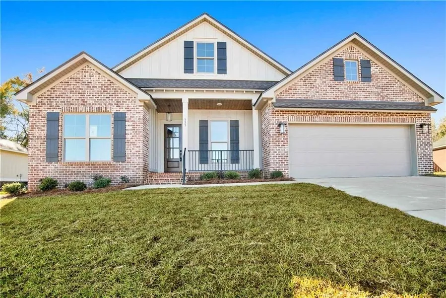 Completed and Ready! Discover the Serenbe plan by Tower Homes, a beautifully crafted 2-story residence offering 4 bedrooms and 3 baths. Located in the Pecan Ridge subdivision, the inviting craftsman exterior opens to a bright foyer and spacious living area highlighted by rich wood flooring, trim accents, and a 42-inch ventless gas fireplace with a wood mantel and shiplap surround. Oversized windows and double doors to the covered patio fill the room with light. The chef 's kitchen boasts painted cabinetry, a tile backsplash, upgraded quartz counters, and a generous flat island with an accent cabinet color, plus stainless steel appliances: a gas range, a built-in oven, a dishwasher, and a microwave. A sunlit dining area showcases custom trim. The main-floor primary suite is a serene retreat featuring hardwood floors, an accent trim wall, dual quartz vanities, a soaking tub, a large tiled shower, a private water closet, and a walk-in closet with custom wood shelving. A guest bedroom and full bath, along with a spacious laundry room with storage, complete the first floor. Upstairs, two bedrooms feature ample closets and cozy nooks for desks or reading corners, served by a third full bath with a quartz vanity. Blending craftsmanship and modern comfort, this home delivers style and livability in every detail. The backyard is fully fenced and ready for move-in. Gold Fortified, the home includes a 1 yr builder warranty, 10 yr PWSC structural warranty, and a 1 yr. termite bond with Formosan coverage. One or more principles of the selling entity are licensed real estate agents and or Brokers in AL. Floor plans are for example only. Buyer to verify all information during due diligence.