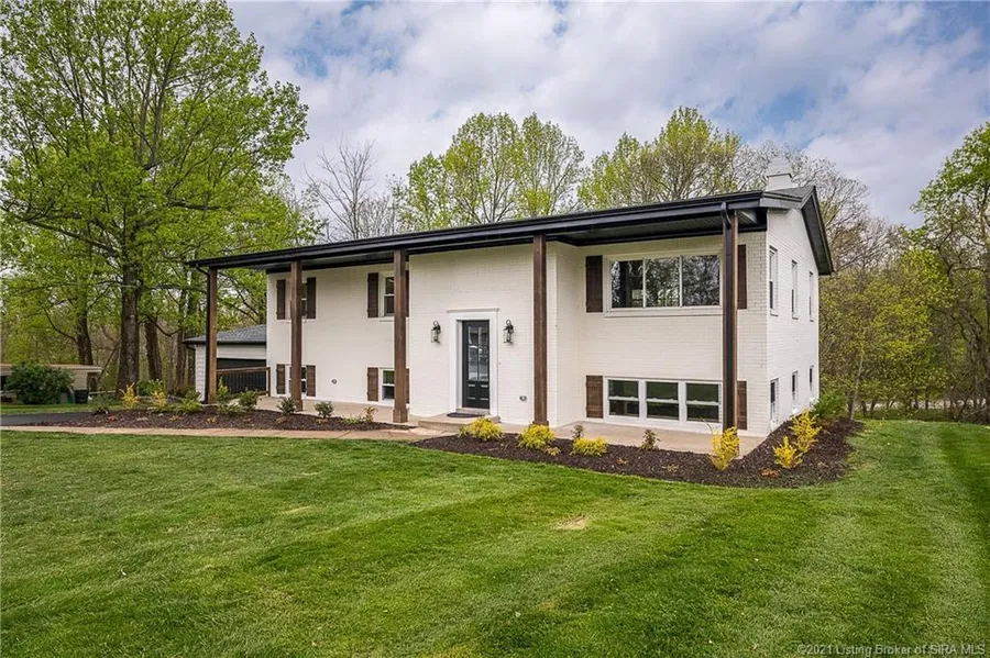 This is a SPECTACULAR find in one of Floyds Knobs' best kept neighborhoods! Situated on OVER AN ACRE in super-convenient Buffalo Trail, this completely REMODELED open floor plan will blow you away! 4 bedrooms, 3 FULL baths, HARDWOOD floors, granite countertops, beautiful backsplash, STAINLESS STEEL appliances and ALL ceramic tile bathrooms! A screened in porch with gorgeous tile overlooks the HUGE backyard and the lower level has enough space to entertain for DAYS! Lower level also includes a WET BAR, tons of storage and lots of natural light through those brand new windows! BIG 2 car garage! Worry-free here with a NEW ROOF, HVAC and water heater. This home HAS. IT. ALL!! One selling member of owning LLC is licensed Real Estate Agent in IN. Sq ft & rm sz approx. Additional Parcel ID's: 22-04-02-100-312.000-006, 22-04-02-100-072.000-006, 22-05-02-100-303.000-007, 22-04-02-100-313.000-006. Full Legal: NE 1/4 SW 1/4; 21-2-6; .30 Ac; (Prt L 17), L29; 21-2-6; .41Ac, Prt L 28; 21-2-6; .335Ac, Prt L.28; 21-2-6; .115 Ac., Prt L 17; 21-2-6