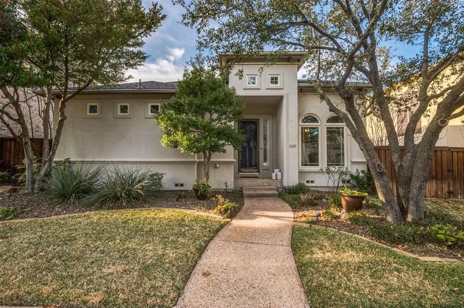 Gorgeous Mediterranean home in exclusive gated community of University Park Estates in the heart of Las Colinas. Beautiful updates and custom workmanship throughout this single-story home. Enter to 12' ceilings, abundant natural light, neutral colors, polished hardwood floors, and custom crown molding throughout. The dining room features bright arched windows and tasteful chandelier. The inviting living room offers a tall tray ceiling, custom LED lighting, and ample sunlight from the large windows overlooking the deck. The kitchen offers modern stainless steel appliances, quartz counters, walk-in pantry, undercabinet LEDs, a butlers pantry, and a new gas cooktop that is a chef's delight! Large primary bedroom retreat with sitting area, custom lighting, and private access to the gorgeous covered deck. Primary bath boasts granite counters, separate frameless shower and large walk-in closet. Spacious laundry room with cabinets and granite counters. Hallway work-study area features built-in cabinets and granite desktop. The spacious covered patio and custom extended deck and garden provide a perfect retreat for hosting or staycations! Truly beautiful in the spring! Irrigation system replaced in 2024. Roof in 2022. Water heater in 2022. HVAC in 2020. Anderson windows! WOW! Fantastic central location in the metroplex plus a short commute to DFW and Love Field airports. A short golfcart ride to Las Colinas Country Club. This planned community includes pickle ball, tennis, sand volleyball, clubhouse with gym, pool, state of the art security and more! An amazing price point for University Park Estates for an exquisite home that has been meticulously updated and maintained!