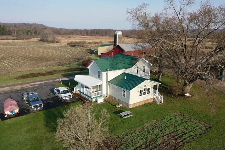 Right off the house is the newly built (2013) 40 x 47 insulated garage with large automatic bay door. Garage has separate 200-amp electric system. Plenty of space to store farm equipment, etc. Including an attached break room/office with electric, propane heating. Attached to the garage is a pole style 48 x 56 horse/cattle barn that is currently housing 30 head of beef cattle. Livestock barn is equipped with several sets of head locks. Several acres of pasture with high tensile fencing set up rotational grazing. Inside pastureland is apple orchard with some pear trees.