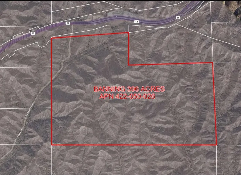 396 acres located in the Badlands Mountains of Riverside County. Subject is south of Highway 60 and east of Gilman Springs Road. Hilly to mountainous topography with elevation ranges from 1,800 to 2,300 feet. Zoned W-2-20 (Controlled Development Areas) 1 DU/20 acres. Potential recreational getaway, guest ranches, retreat, large lot subdivision, ag uses, investment, nature preserve, mitigation or habitat conservation. This is a very rural area with minimal development. There is an unpermitted cabin and water well at the northern end of the property near Ellis Timothy Lane, no value has been placed on the improvements.