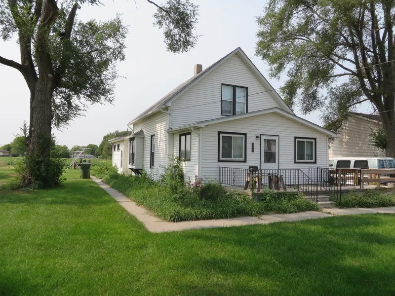 This farmhouse comes with 4 lots and 8 acres, with the convenience of being in town. Vinyl siding, garage, covered deck out back. On city water & sewer. Washer dryer hook ups in main level bath. Enclosed porch area has base board heat. Hardwood floors. Home needs TLC. Sold "as is" Condition.