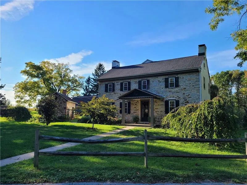 HIGHEST&BEST DUE TUES OCT 18TH 6PM This is a fantastic opportunity to own one of the first homes ever built in Lower Macungie (circa 1780). Incredible STONE Colonial home has been lovingly maintained to retain the original character of yesteryear w/all the modern conveniences of today. Step inside where the pride of ownership abounds! Beautiful wide plank original flooring throughout. Extra deep window sills w/newer windows. Totally redone kitchen w/all the amenities & brand new, stainless steel appliances! You will be delighted w/the thoughtful updating that has been completed-always keeping true to the old world charm. 3-4 generously sized Bedrms, 2.5 baths, 2nd flr ultra spacious laundry room. New roof, gutters, heating system & wired for whole house generator for added peace of mind! Tastefully added sunroom addition & much more! Enjoy the grounds where you will find fruit trees, exceptional outbuildings & an oversized 3 car garage! BBQ area, patio, covered porches & small barn!