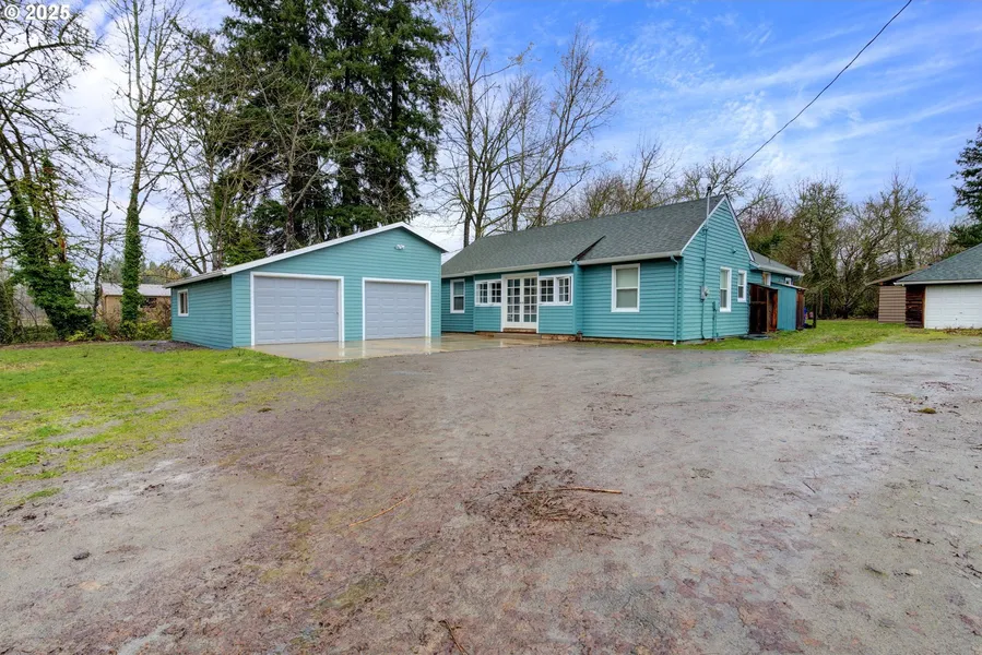 Charming farmhouse situated along Dickey Creek is nestled on a .58 acre lot in the heart of Molalla farm country. Just a couple minutes away from the river and town, with several outbuildings for all of your farm equipment and toys. Shop is 30x25 with power and cement floor and has been recently painted. Shed is 10x25 and an additional outbuilding is 30x20. Huge yard with raised garden beds, creek runs alongside home, front of home is fenced for privacy. Cute front porch with windows that open and rocking chair! Woods floors throughout with updated kitchen that comes with all appliances. TWO primary suites with full updated bathrooms attached. Fresh paint inside and out! This lil farmhouse is move in ready and is the perfect property to start your lil farm. OPEN HOUSE SUNDAY 1/18 from 12pm-2pm
