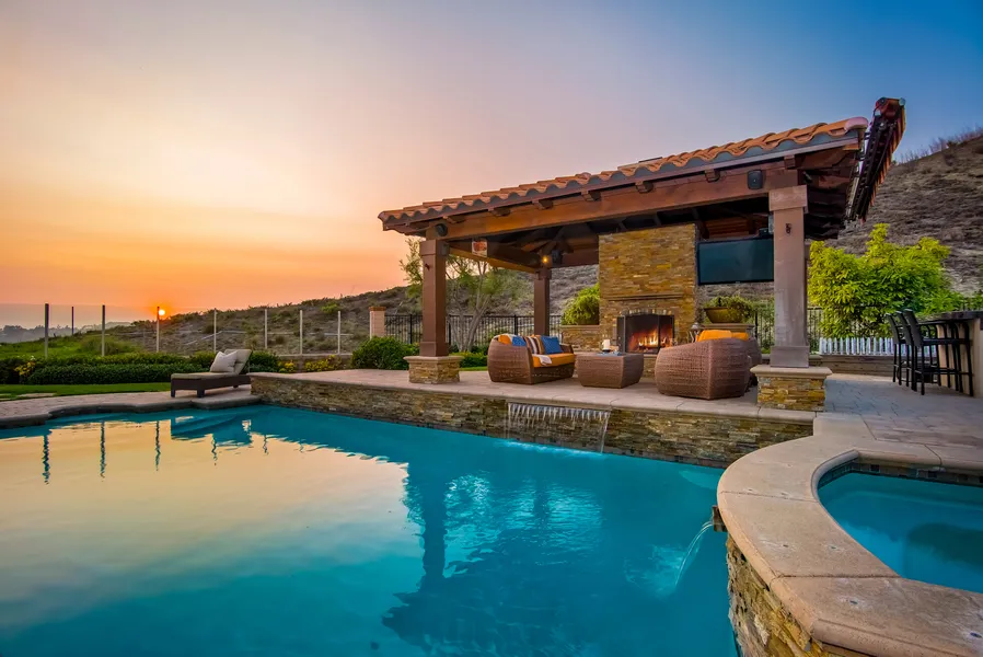 RARE FIND -- 12,447 USEABLE sf lot, with OCEAN AND HARBOR VIEW! PRIVATE, END OF STREET LOCATION, DREAM POOL, large OUTDOOR ROOM W/ STONE FIREPLACE, TV, FIREPIT, and BBQ KITCHEN. NO MELLO ROOS. OWNED SOLAR/WATER SOFTENER SYSTEMS. HARDWOOD FLOORS. ELECTRIC CAR OUTLETS, 5 BEDROOMS (Including a MAIN FLOOR bedroom), LOFT, OFFICE (main floor), plus a LIBRARY! Truly a special home on an ESTATE-LIKE LOT with the LARGEST floor plan in the community. This home has it all! Enjoy one of the best lots and well-designed gardens with multiple areas to enjoy, in the gated Blue Harbor community! A white, open concept, kitchen, with stunning granite counters and island, is a setting FIT FOR A CHEF that includes a stainless steel Thermador 6 burner gas stove with grill, dual dishwashers, dual ovens & microwave and a second refrigerator in walk in pantry with reverse osmosis for filtered ice! Stone fireplace and accents throughout the home! New interior and exterior paint. All 5 bedrooms have white vanity ensuites making them perfect for family and in-laws with MULTIPLE LIVING AREAS that are so useful for today's families! LUXURIOUS MASTER ensuite has a large soaking tub, dual vanities, two large walk in closets & a balcony to enjoy your Dana Point Harbor city view! And the FOURTH OF JULY FIREWORKS from your own backyard! Club Pacifica is close by with RV PARKING, Clubhouse, Pool/Spa/GYM and more! TO TOP IT OFF you are just around the corner from So. Cal's finest BEACHES!