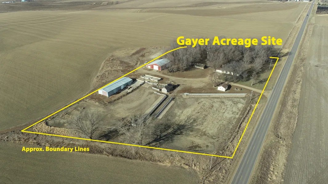 This excellent acreage site consists of a ranch style home, 60 x 64 Machine shed, 36 x 100 open front cattle shed & the buyer of the acreage will also have the option to purchase up to an additional 4.48 acres!