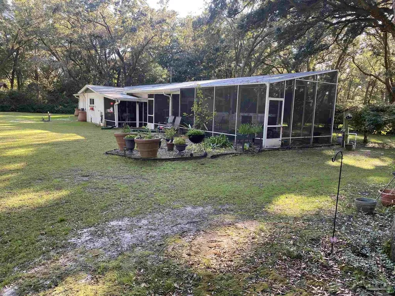 RARE! OVER 2.5 ACRE PRIVATE SANCTUARY WITH FRESHWATER POND, POWERED WORKSHOP & HERITAGE OAKS - Welcome to an extraordinary opportunity to own a rare 2.5+ acre estate where privacy, nature, and infrastructure combine perfectly. Located just minutes from town, this property offers a quiet, peaceful sanctuary that combines space, nature, and infrastructure. The grounds are truly spectacular and feature a permanent Natural Buffer: Enjoy maximum tranquility as the property backs up to a pristine 26-acre wooded parcel, ensuring privacy and frequent sightings of deer and local wildlife. Historic Grandeur: The land is graced by five magnificent Heritage Live Oaks that establish a classic Southern ambiance. This Private Oasis features a tranquil, stocked freshwater pond and a highly valuable 40-foot shallow water well with an automated sprinkler system which covers the front half of the property to help keep the grounds well-maintained, save on water bills and supply the pond. Out Buildings and Storage: the property provides substantial outbuilding space and infrastructure featuring a large 25’x40’ Workshop equipped with power and access to water. There are three open ‘metal’ canopies for convenient vehicle and equipment storage. This extensive space is ideal for those needing room for projects, equipment, or utility storage. This home is updated and ready! This 3 Bedroom, 2 Bath home of 1512 sf was remodeled in 2017 with the following upgrades: a new heat pump, new roof, new windows, granite kitchen countertops, and two fully updated bathrooms with tiled walk-in showers. A favorite feature of this home is easy access to outdoor living. Unwind on the incredibly relaxing 16' x 50' screened porch, which features a rock-lined pond, complete with a waterfall and four large Koi fish. 3372 Childers is conveniently located minutes from elementary and middle schools, a boat ramp, and just minutes to I-10, Pensacola, Milton and Pace.