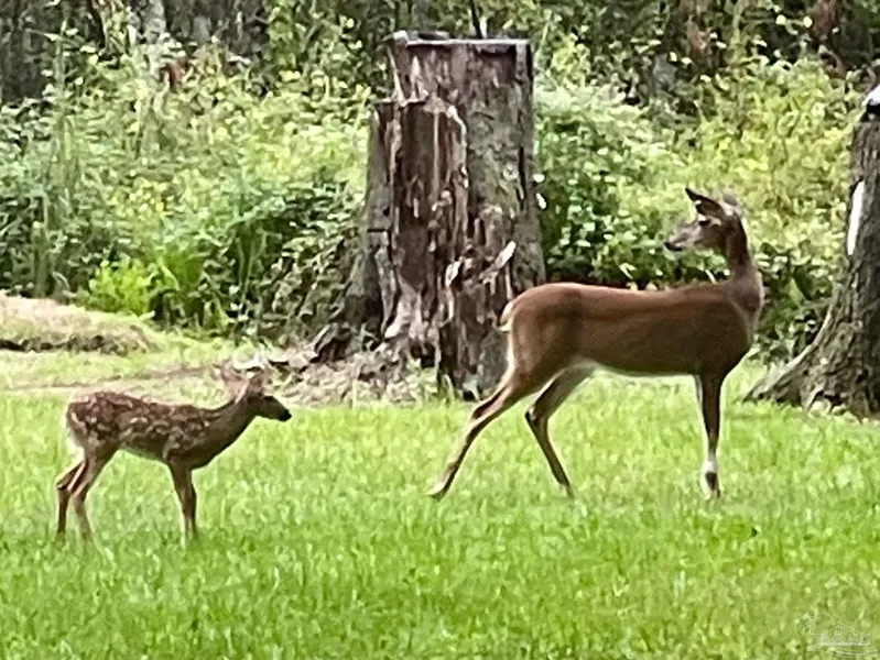 Your Paradise awaits! Nestled under stately oaks and natural surroundings, this 3-bedroom, 2-bath home offers more than just a place to call home ... It's a place to really live. With over 2 acres of land, 5 Heritage oaks, a pond with freshwater fish, a 25' x 40' workshop, 3 large canopies for car and equipment storage, a large screened-in porch, 16' x 50' in size, offering plenty of room for entertainment and activities, you will likely spend more time outside than in. There are 26 acres of undeveloped land that border the back of the property. The owners report that along with other wildlife, deer most often visit their backyard pond. This home was fully renovated in 2017. Although some original elements remain, most of the home is 'like new'. Both bathrooms have fully tiled showers and the primary bedroom features an oversized closet and office or studio area. This home also has an invisible fence that keeps their dogs within the borders of the property. While the property feels secluded and is mostly quiet, Bennett C Russell Elementary and Avalon Middle Schools are within 5 minutes, you are less than 10 minutes from a boat ramp that accesses Escambia River and Bay, and you can be in Pensacola, Milton or Pace in less than 15 minutes. Yes, the deer and fish shown in the photos are actually from the pond and property!