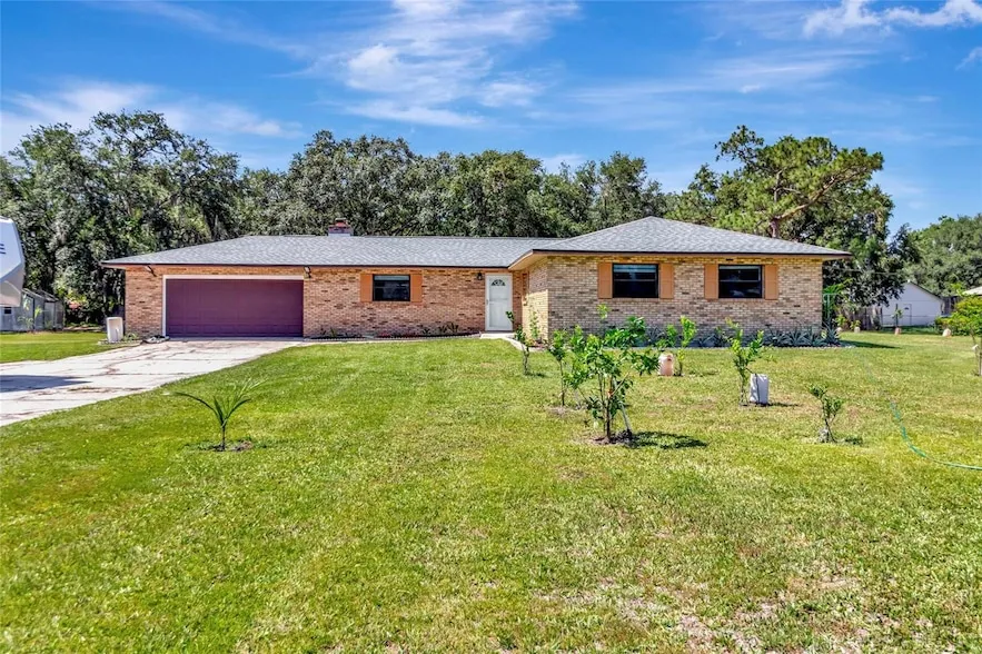 One or more photo(s) has been virtually staged. Welcome to your Florida dream retreat! This fully updated home sits on an impressive 2+ acres of beautifully landscaped land, featuring over 20+ varieties of fruit trees, lush gardens, and total privacy with NO HOA!Brand New Systems with Warranties!Enjoy peace of mind with a brand new roof, HVAC system, hot water heater, and water softener, all installed recently and covered by warranties. These major upgrades mean fewer worries and more comfort for years to come. Energy-Efficient & Hurricane-ReadyThe full breaker electrical system helps protect the home during storms while also keeping monthly electric bills low averaging around $200/month. Modern UtilitiesA new well water system installed in 2024 ensure reliable and cost-effective utilities. Over 20 different fruit trees provide an abundance of fresh, delicious fruit throughout the year. Live healthier, save money, and enjoy harvesting right from your front and backyard. Spacious & Versatile Outdoor LivingThe Live Oak shaded backyard offers the perfect environment for animals, gardening, relaxing, or even building additional structures. Bring Your Boat, RV, or Horse!There s plenty of space to park recreational vehicles and with E1 zoning, you re allowed one horse/continuous acre perfect for equestrian enthusiasts or those dreaming of hobby farming. This property checks all the boxes for sustainable living with style and flexibility. Whether you're looking for a homestead, a country retreat, or a property with room to grow, this one has it all plus the upgrades and warranties to back it up. Stunning updated kitchen with contemporary finishesNew flooring throughout the homeStep outside to your very own custom in-ground pool, perfect for entertaining or relaxing under the sun. The screened lanai offers plenty of space for outdoor dining and lounging while enjoying your tranquil surroundings. And the best part? You're just 15 minutes from Disney World, world-class dining, shopping, and entertainment yet tucked away in your own peaceful oasis. This is more than a home; it s a lifestyle. Schedule your private showing today and experience this unique property for yourself!
