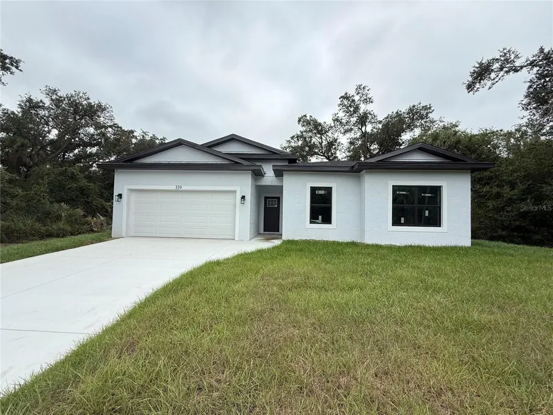 No need to wait for a new build when this lovely 3 bedroom, plus OFFICE/DEN, 2 full bathrooms, with 2 car-garage will be ready in 4 weeks! Have 15-20 years of worry-free maintenance buying brand new and being pampered with the state-of-the-art items such as beautiful Quartz countertops, ABUNDANT amount of 42" solid wood cabinetry with soft close doors & drawers, Stainless Steel refrigerator, dishwasher, range, & microwave, upgraded high-end lighting including ceiling fans with light kits in all Bedrooms, Living Room, & Office plus a generous amount of recessed lights, allergen-free porcelain plank flooring throughout, twin walk-in closets in Primary Bedroom, soaring 9'4" high ceilings throughout, 5 1/4" baseboards, fully tiled bathtub walls and walk-in shower... no plastic inserts here! Live in extravagance without spending a fortune! Dedicated Laundry room with window that streams in natural light. Built to current building codes and beyond, this home will provide a lifetime of ease with hurricane IMPACT WINDOWS, doors, and sliders, never put up a shutter and enjoy low cost Home Owner's insurance as New construction is the least expensive to insure plus this home IS NOT in a flood zone, so no flood insurance needed! With no HOA, and no deed restrictions, you can utilize your investment as you see fit…live here yourself, rent it out annually, seasonally, or AirBNB it. Bring all your toys... store your RV, boat, kayaks, put up shed for an art studio, trampoline, or treehouse, doesn't matter in this neighborhood of Charlotte County! And of course, what could be more Florida than having your own pool which this 10,000 square foot property has plenty of room for! Pictures of same floor plan but not actual home, colors and finish choices may vary. Other locations available, some with smaller floor plans. Call for your private showing today!