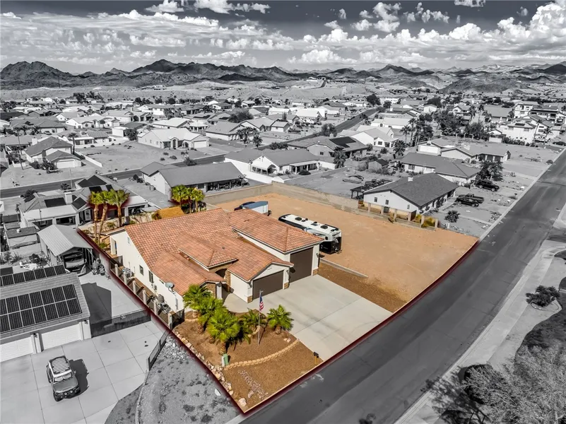 Look no further, this gorgeous home located in the sought-after Sunridge estates community has everything you need and room for more! This home comes fully furnished with a finished backyard made for entertaining. All furniture is high quality and very lightly-used, if at all. A beautiful double-door entryway leads you into an open living room, kitchen, and dining area, with plenty of room for you and your family and guests. The large master suite has a sliding glass door that leads to the backyard, as well as a mater bathroom with a large walk-in shower with a bench, and a garden tub for soaking. Along with RV hook-ups, the large pull-through RV garage opens up to your own personal oasis in the backyard including a heated pool and a specially crafted "straw-hut" gazebo complete with a built in-BBQ, refrigerator, sink and ice chest! Full brick wall for privacy. Meticulously planned and perfectly landscaped, this yard is unique and ready to show-off! BUT THATS NOT ALL... this home also includes the .23 acre lot located right next door, which has been cleared and already has a brick wall in place surrounding the property. With no HOA this lot is ready for your next home, garage, or investment, the choice is yours! Located minutes from the casinos in Laughlin, the Colorado river, or Lake Mohave makes this home perfect for a vacation home or rental. DO NOT MISS this one-of-a-kind property, this home is move-in ready, all you need is your bags! Slot machines, dart board and bar in garage are negotiable.