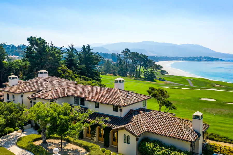 Rarely does a property become available in Pebble Beach that truly distinguishes itself from the rest. Situated on the coveted 13th fairway of the Pebble Beach Golf Links with panoramic views of the ocean and golf course from Carmel Beach to the 6th and 8th holes. This 6 bedroom, 6 full, 2 half bath contemporary Mediterranean masterpiece presents a sophisticated, clean elegance and the highest level of craftsmanship and quality. The many amenities include: 2 master suites, the ultimate chef's kitchen, elegant cigar-friendly office, billiard room with bar, wine room, exercise room, home theater, golf simulation room, greenhouse, putting green and chipping area and wonderful indoor/outdoor living with two great patios, one ocean-side with fire-pit and the second interior sheltered from weather. No expense was spared in building a truly priceless home designed for both intimate and large gatherings. From the minute you enter the gates of this magical property, you have found nirvana.