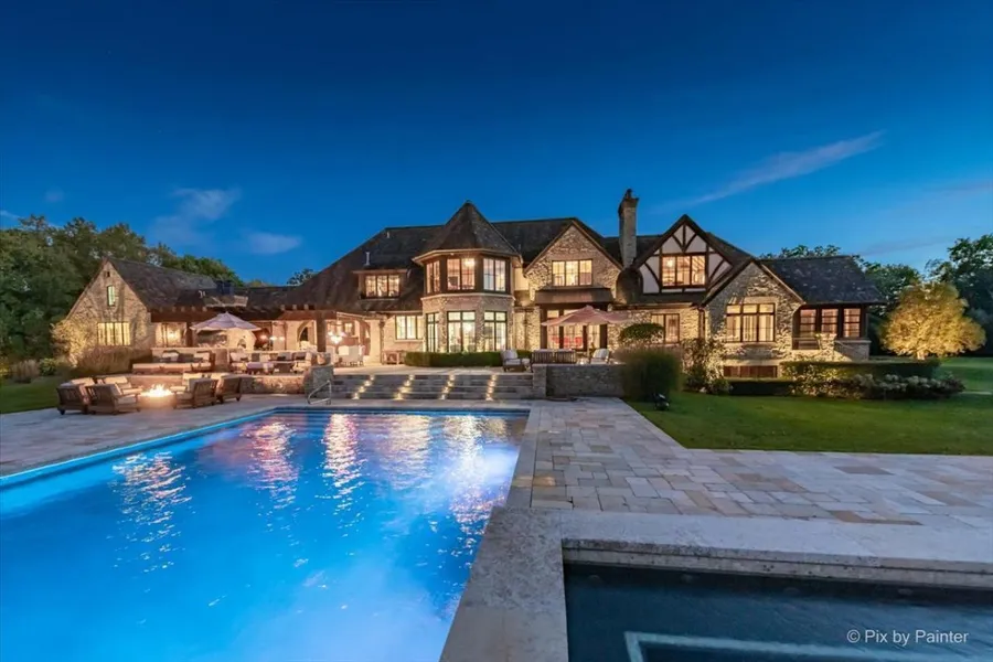 To experience a feast for the senses, please google the property address to see the YouTube video of the property. As you enter the gates to this sprawling property in the lovely village of Wayne, you'll be swept away to old world charm and craftsmanship. Modern luxuries have been seamlessly connected in this English country manor home. With a fine hand, this home has been crafted to serve as both an incredible standard for living, as well as a comfortable and welcoming home in which to entertain. A discerning eye will notice the details, but it's when you see the slate roof, the heavy timbers, the wrought iron, and stone - pulled from old European buildings - that you will understand that no detail has been left to chance. The 6 wide old-world walnut hardwood and tumbled stone flooring gives a foundation for the 5.5' hallways. There is a back hall that houses a commercial beverage cooler for entertaining and full bath that leads to the back loggia. The billards room is elegant, with a lovely view of the front landscape, with beautiful custom ceilings and carved wainscot that is the perfect, custom height. Doesn't everyone have a scullery? If you entertain, this is a must-see, fully ready for staff to prepare a meal out of reach from the busy kitchen and bustling open spaces while entertaining your guests. The scullery is crafted from alder wood and boasts a large farm sink & high-end appliances. Beautiful arched door leads to an incredible study with massive travertine surround at fireplace, lovely oriental carpeting, and built-ins. Ascend the massive and beautifully carved custom staircase, fashioned after the Palace of Holyroodhouse in Edinburgh, Scotland. This will lead you to the primary bedroom, all other large bedrooms (all with amazing views), and more storage. bluestone-floored sunroom is just off the study with a cathedral planked ceiling and a massive iron ceiling fixture. The kitchen, with its beautiful Italian carrera marble perimeter countertops and Shaw double sink, has an articulating faucet/sprayer, 60 Wolf range, custom stainless hood with strapping & rivets, Sub Zero double fridge with 4 freezer drawers, undercounter Sharp microwave drawer, and the island is made of leathered marble in substantial thickness, with room for seating. The breakfast room/kitchen and sunroom all have tumbled limestone flooring. The sunroom has an embossed metal ceiling with strapping/rivets, which gives a nod to the old world feel. Step from this area out onto the loggia. Fully equipped with built-in pizza oven, extra-large bar with seating, European stone everywhere .. . There are truly no words to describe what you are about to experience here. There are endless areas for seating, games, dining, lounging by the pool or elsewhere, on this expansive back and resort-like landscape. The pool is spectacular, and the casita is furnished with a bar/serving area, fireplace, two dressing areas and a full bath. There is a commercial pool equipm