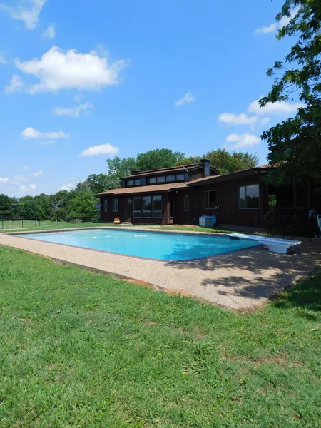 AMAZING horse property surrounded by majestic oak trees with beautiful and architecturally unique custom built home situated on 34 lush acres! Too many features to list them all. This is a must see property. The main home is 2,876 sq. ft. Out buildings include a two story guest house, a 24x84 foot barn equipped with 7 stalls and a tack room, workshop with electricity, green house, and one fancy chicken coop! Additional features include pipe fencing, two RV pads with hook ups, sprinkler system, a shared approximately 3 acre stocked lake stocked, and a saltwater diving pool, and an abundance of wildlife.