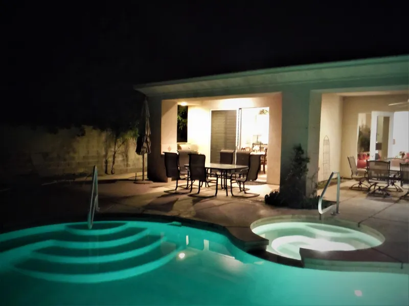 This beautiful well kept 3 Bedroom 3 Bath home is loaded with extras: TV's in every room, Music system. A beautiful large saltwater pebble tech pool and spa with hand rails for easy entry. This home has new carpeting and has recently been painted on the exterior. A new air conditioning system with a heat pump was installed in 2024. It also has artificial grass in the front and rear. Available October1st through December 31st for $6500.00 per month and January 1st through April 30th for $7500.00 per month. May 1st to September 30th for $6000. per month. For a long term rental, prices are negotiable. All utilities are included except for the natural gas which the lessee puts in their name and pays for.