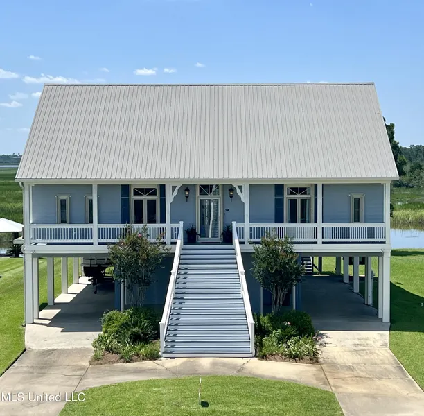 HUGE PRICE REDUCTION!! Beautiful waterfront home overlooking the Bay of St. Louis and Jourdan River with easy access to both by boat. Open floor plan for plenty of entertaining and amazing views overlooking the Bay of Saint Louis and Jourdan River on the southside of Diamondhead. Also has easy access from your boat to downtown Bay Saint Louis, Pass Christian and Diamondhead to name a few. Wake up and watch the sunrise and come home to a beautiful sunset view on the outdoor screened porch, while watching all the natural wildlife including otters, osprey, bald eagles and deer, to name a few... Then catch fish off the pier for dinner! This home has plenty of outdoor entertainment areas for relaxation offering versatile and comfortable living spaces, including a large screened back porch (672 sq ft) with a dedicated propane outlet for the grill without the hassle of propane tanks. Also has an outdoor kitchen with a sink, mini fridge connection, ceiling fans, and additional outlets for outdoor TV's and amazing lighting. Custom built with an open floor plan. Teak interior doors, interior sliding doors, and antique hand-carved Balinese door all imported from Bali. Gourmet kitchen designed to entertain with custom cabinets, granite countertops and Jenn-Air professional-grade gas oven and cooktop. Large walk-in pantry providing ample space to store dry goods, canned items, kitchen appliances, and more, helping to keep your kitchen organized and clutter-free. An additional refrigerator is in the pantry offering extra storage for perishable items, beverages, and overflow from the main refrigerator. Large master suite with stunning water views. Two master closets providing ample storage space for clothing, accessories and personal items keeping bedroom clutter-free. Marble floors in all the bathrooms and 6'' wide Mahogany wood plank flooring throughout the rest of the house. On top of all these additional features, includes a cargo lift to main level, tiled downstairs mud room/ entry room on the ground floor that is 420 sq ft (not included in home sq feet) for interior access with plumbing. Eight inch slab and engineered cement piling with rebar embedded throughout the piling and below slab. Steel engineered truss system attached to pilings. Engineered ceiling truss system. 2 x 6 framing with closed cell spray foam for maximum insulation and strengthening. Foam insulation on ceiling and low maintenance Hardy Board exterior. Two HV/AC systems and two hot water heaters. Diamondhead is a picturesque community know for its scenic beauty and proximity to water bodies. It has evolved into a vibrant city, home to families of all ages conveniently located between New Orleans and Gulfport/ Biloxi and continues to meet the high standards for golf along the Gulf Coast. * (2) 18 hole championship golf courses * Airport with storage hangers, repair facilities and fueling * Indoor/ Outdoor Golf Academy * Marina with complimentary boat launch within 2 miles from house * 4 pools and a splash pad * 2 walking trails * 9 lighted (hydra-clay) tennis Courts * 4 hard-court pickleball courts. *** Not to mention members in good standing receive a discount on food & beverage purchases at The Club at Diamondhead, preferred golf and tennis rates. ##This home has 4 ways out of the house including the interior stairs. The interior stairs make it easier getting to the main floor especially in the rain.