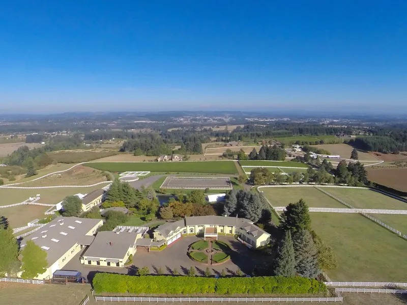 Idyllically positioned on a hillside enjoying unobstructed views of 5 Mountains, this is a once in a lifetime opportunity to acquire Quailhurst, Oregons landmark Equestrian and Vineyard estate. The vineyard is planted in Jory soils and produces a premium Pinot Noir grape. The wine is available in fine restaurants and to club members at the onsite tasting room on Saturdays. The equestrian facility is world class with mahogany lined stables and club room. The indoor arena is made of massive beam spans and was originally designed to accommodate the World Champion Clydesdale driving team. At the present time the arena is used for the training of international dressage and jumping horses and to host vineyard events for up to 500 people. The Japanese garden and lake are 2nd in the state only to the Japanese Garden in Washington Park. The residence provides 10,000 plus square feet of refined accommodation, providing a state of the art wood paneled chefs kitchen, formal spaces fit for entertaining dignitaries and a private guest apartment. You enter the gated estate up a picturesque tree lined drive amongst white rail fencing of the equestrian paddocks and the 9 acres of rolling vineyard. The compound has full water rights and includes a 2nd residence as well as a bunk house. There are slopes ideal for significant expansion of the vineyard.